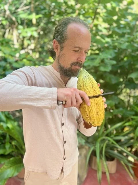 He is passionate in supporting people on an emotional and spiritual level with the medicine of cacao. He discovered cacao through his relationship with his wife, Diana, as they created a daily ritual over the past decade, to connect as a sacred couple, and to deepen their relationship with this grounding plant.