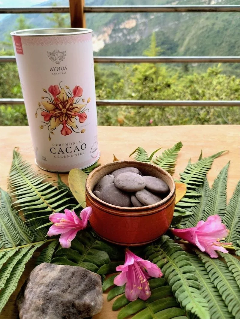 At Aynua, in a beautiful private nature setting, we create a safe space for you to be in nature, and listen to the wisdom within with the support of ancestral cacao strains from the birthplace of cacao on earth, in Northern Peru, on the ancestral lands of the Chachapoyas cloud people.