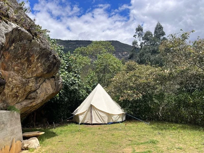We offer glamping accommodation in nature, short distance from a small Peruvian village. Experience the simplicity of a personal private bell tent, nestled near a stream on a private property, with cozy bohemian decor.